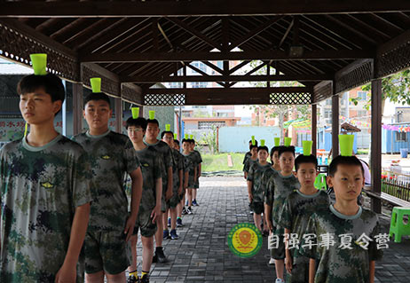 营员站如松,营员在军姿锻炼中,提高自控能力,磨砺意志。